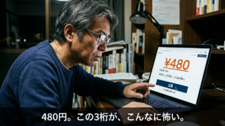 人生で初めて自分の思考に480円の値札をつけた。2週間で2本出稿。30回クリックされて売上ゼロ。会社員時代は自分のスキルに値段をつけたことがなかった。56歳フリーランスが「売る筋肉」を鍛え始めた記録。
