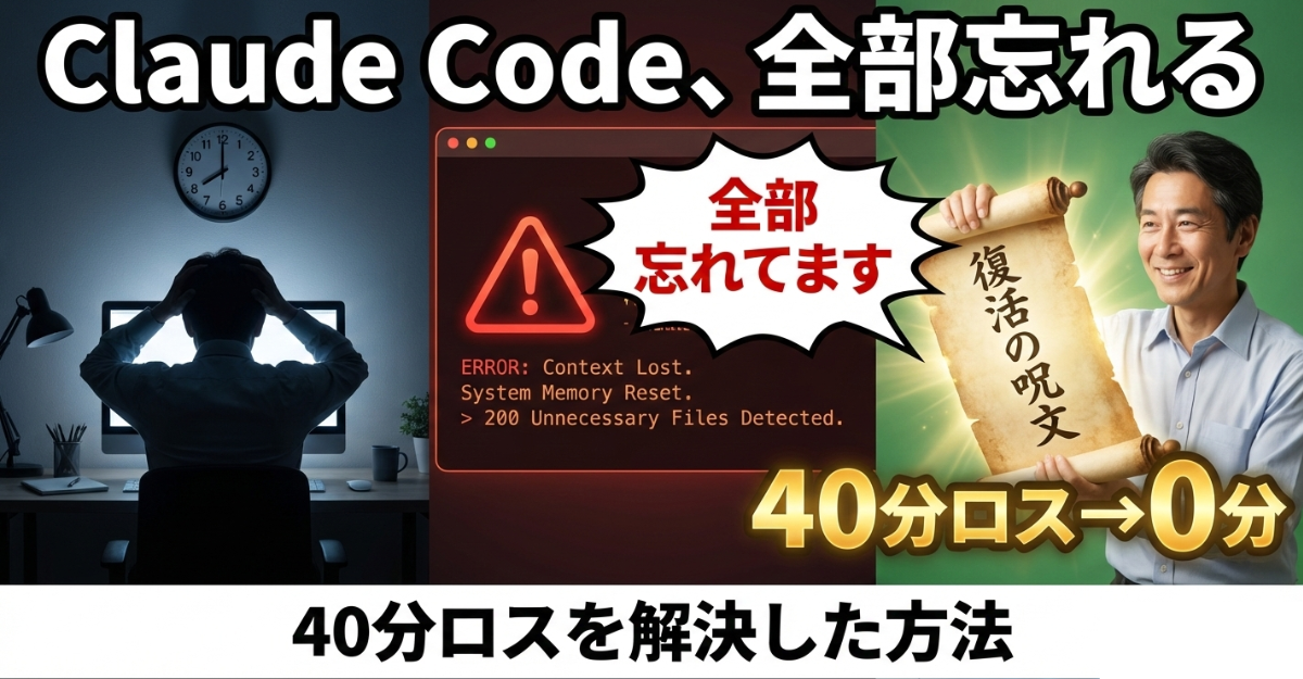 Claude Codeは全部忘れる|再開時の40分ロスを解決した方法