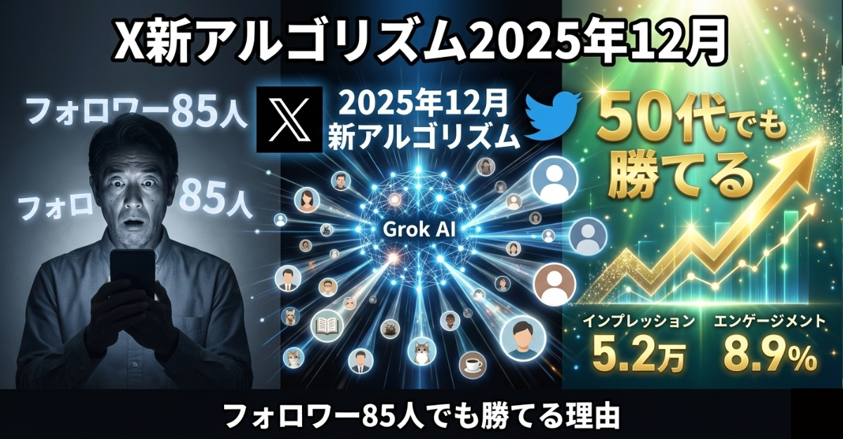 X新アルゴリズム2025年12月|フォロワー85人の50代でも勝てる理由