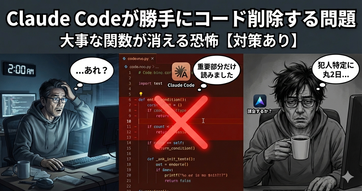 Claude Codeが勝手にコード削除する問題|大事な関数が消える恐怖【対策あり】