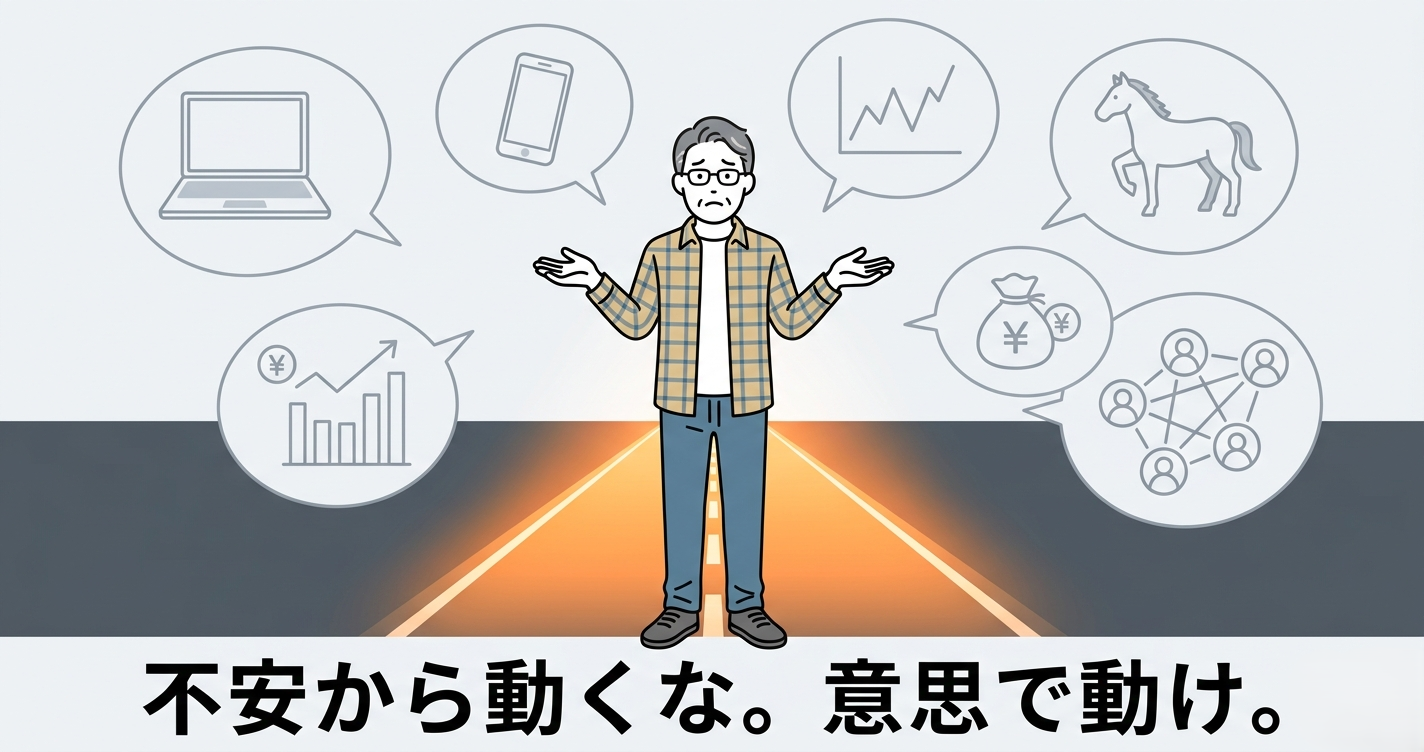 不安になる。「もっと確実な方法があるんじゃないか」と思う。新しいことに手を出す。リソースが分散する。全部中途半端になる。さらに不安になる。