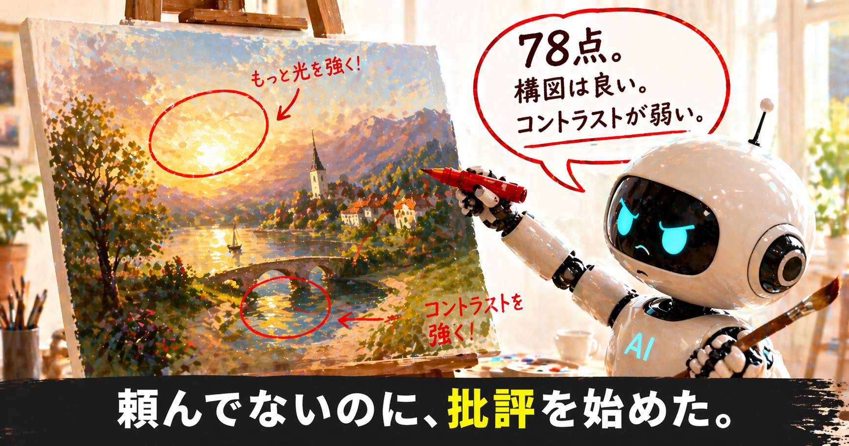 頼んでない。俺は「描いてくれ」としか言っていない。なのにAIが、自分で描いた絵を、自分で批評し始めた。