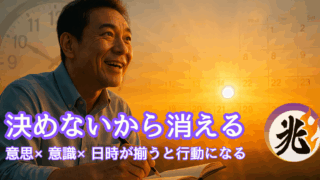 考え方 決めないから消える|“意思×意識×日時”が揃うと行動になる アイデアが消えるのは未決定だから。内容×開始日時×最初の一歩で「今やる or いつやる」に落とし、14日スプリントと再開ルールで前進する方法を解説。 2025.10.06 考え方
